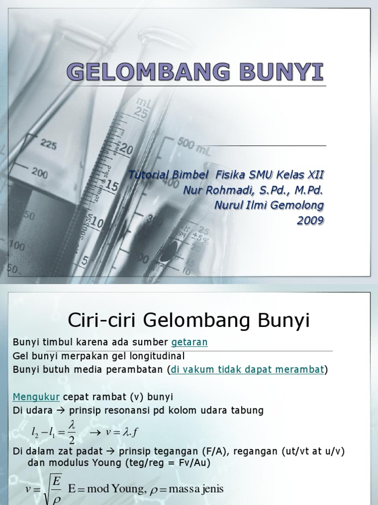 Nur samsudin.s.pd.fis sma negeri 2 purbalingga amir duma Suatu bunyi yang panjang gelombangnya λ = 2,5 m merambat pada zat padat yang memiliki modulus young e =1010 n/m2 dan massa jenisnya ρ = 1000 kg/m3. Smp negeri 14 yogyakarta konsep bunyi, frekuensi bunyi kelas viii semester 2 alokasi waktu: Getaran gelombang dan bunyi materi pptx bab 12 : Soal dan penyelesaian fisika sma pada kesempatan ini kita akan menjawab soal soal tentang gelombang mekanik fisika kelas xi yang mencakup jenis.