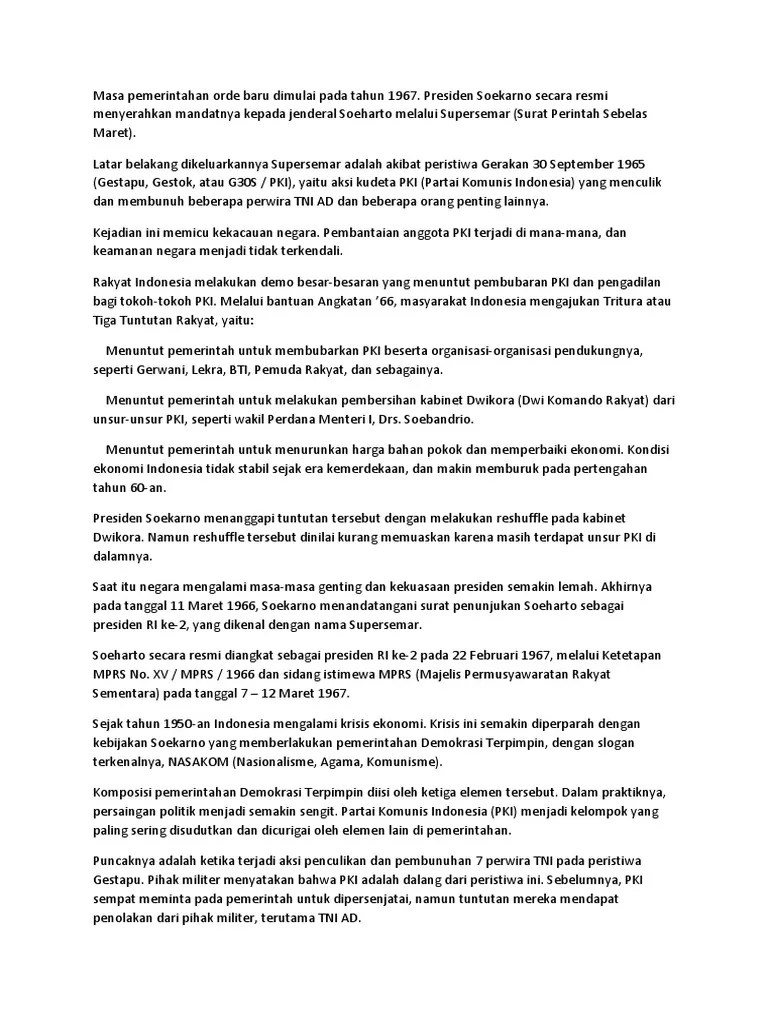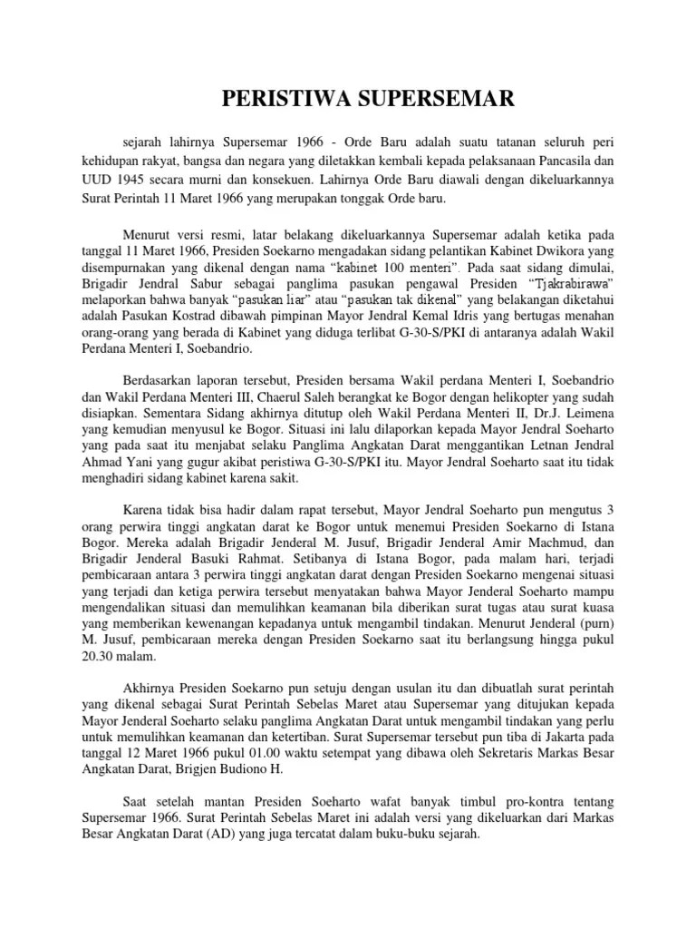 Latar belakang supersemar dibuat karena presiden soekarno ingin. Soekarno ditandai oleh peristiwa g30 s pki, serta dikeluarkannya supersemar yang pada hakekatnya merupakan bentuk penyerahan kekuasaan kepada soeharto. Dengan begitu, menurut anhar, perdebatan mengenai latar belakang dikeluarkannya supersemar oleh soekarno juga telah berakhir. Tepat 62 tahun yang lalu, pemerintah indonesia mengeluarkan dekrit presiden 5 juli 1959. Pasalnya, tiga jenderal yang datang menemui presiden soekarno di istana bogor pada 11 maret 1966 berhasil meyakinkan soekarno untuk mengeluarkan .